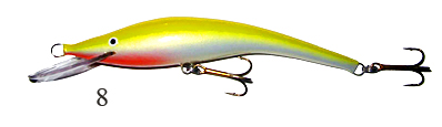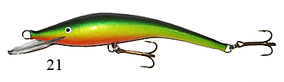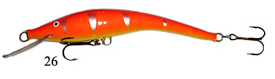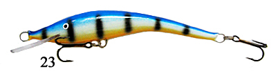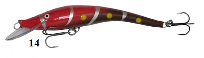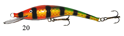 Abassirunkoinen, 14cm:n mittainen, vahvapotkuinen ja syväkulkuinen vaappu. Koukkuina on VMC-kemiallisesti teroitetut koukut. Sukeltaa noin viiteen metriin. Kohderyhmä: Kuhat, hauet. Ventti-Syvärin hinta on 12 euroa /kappale + toimituskulut. Tarkemmat tilausohjeet yhteystiedoissa.